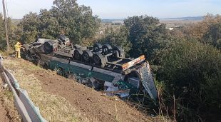 Un camió bolca a l’N-IIa a Sant Julià de Ramis i el conductor resulta ferit