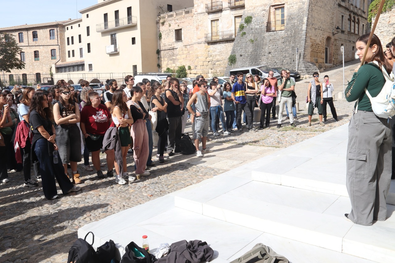 Més d’un centenar d’estudiants s’han concentrat aquest divendres al migdia davant del rectorat de la Universitat de Girona (UdG) en suport al poble palestí. La protesta s’ha convocat en plena vaga universitària i, segons els promotors, ha tingut un seguiment molt elevat a la UdG, amb la majoria d’aules buides als campus del Barri Vell i de Montilivi.
