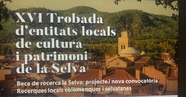 La població de Santa Coloma de Farners acollirà el pròxim 11 d’octubre la XVI Trobada d’Entitats Locals de Cultura i Patrimoni de la Selva, que es farà a l’Arxiu Comarcal a partir d’un quart de deu del matí. L’esdeveniment és organitzat pel Centre d’Estudis Selvatans, el Consell Comarcal de la Selva i l’Arxiu Comarcal, amb el suport de la Diputació de Girona, l’Institut Ramon Muntaner i, enguany, de l’Ajuntament de Santa Coloma de Farners.
