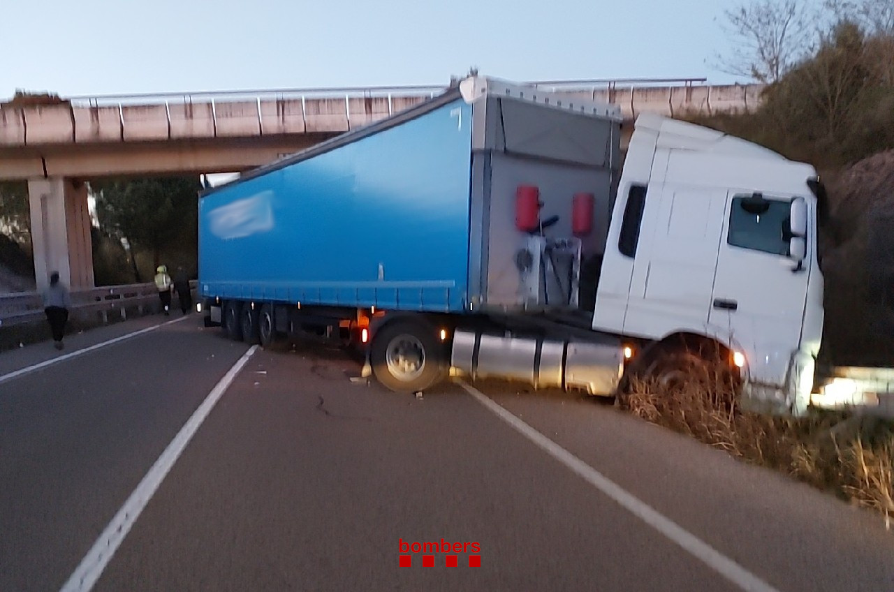 Segons Bombers de la Generalitat, que van intervenir amb quatre dotacions, l’accident —comunicat al 112 a les 17.20 h— va provocar que el camió quedés travessat a la via, impedint el pas de vehicles en tots dos sentits. Els efectius van treballar per assegurar la zona, retirar els vehicles implicats i permetre la reobertura de la carretera amb normalitat.