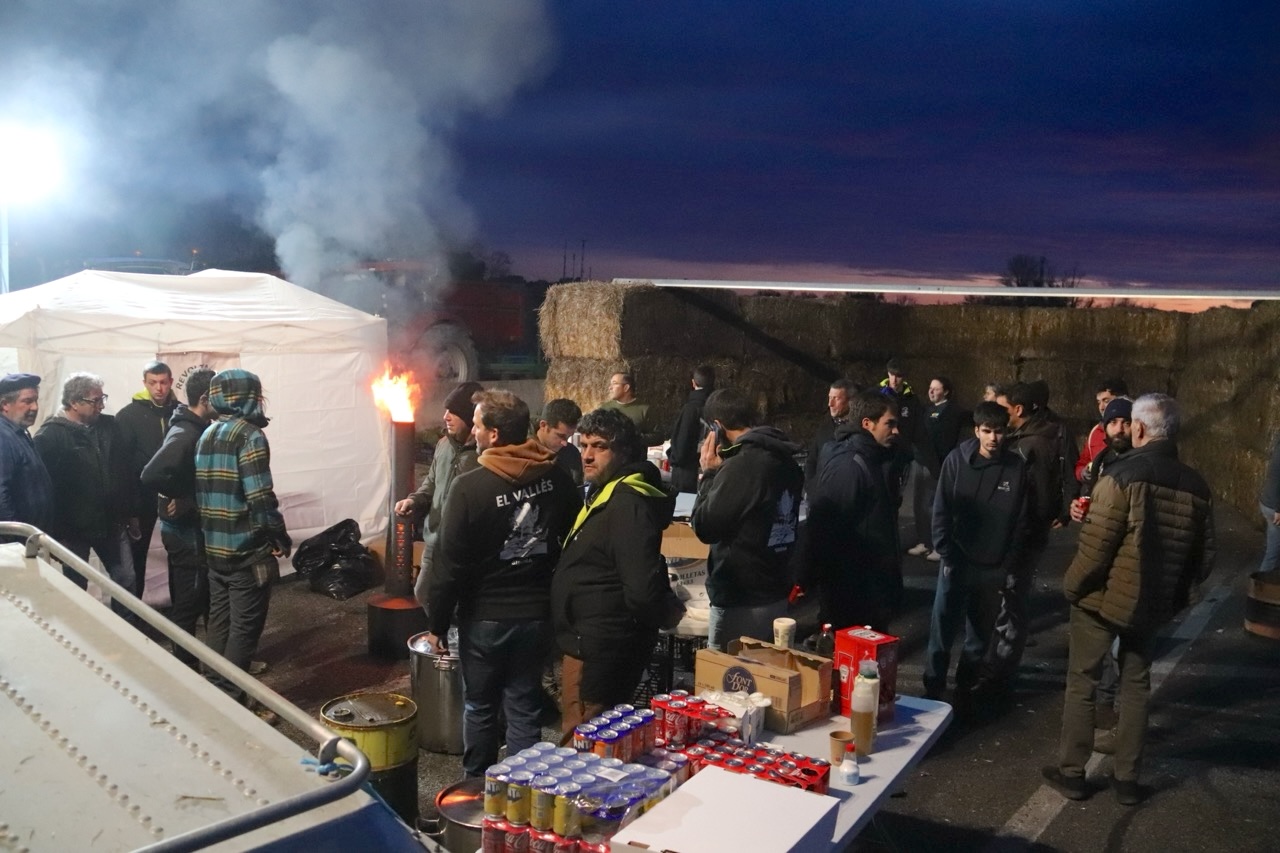 El Gremi de la Pagesia Catalana – Revolta Pagesa també prepara les hamburgueses que donaran per sopar i avituallament amb productes del territori que han portat els ramaders i agricultors que participen en la protesta.