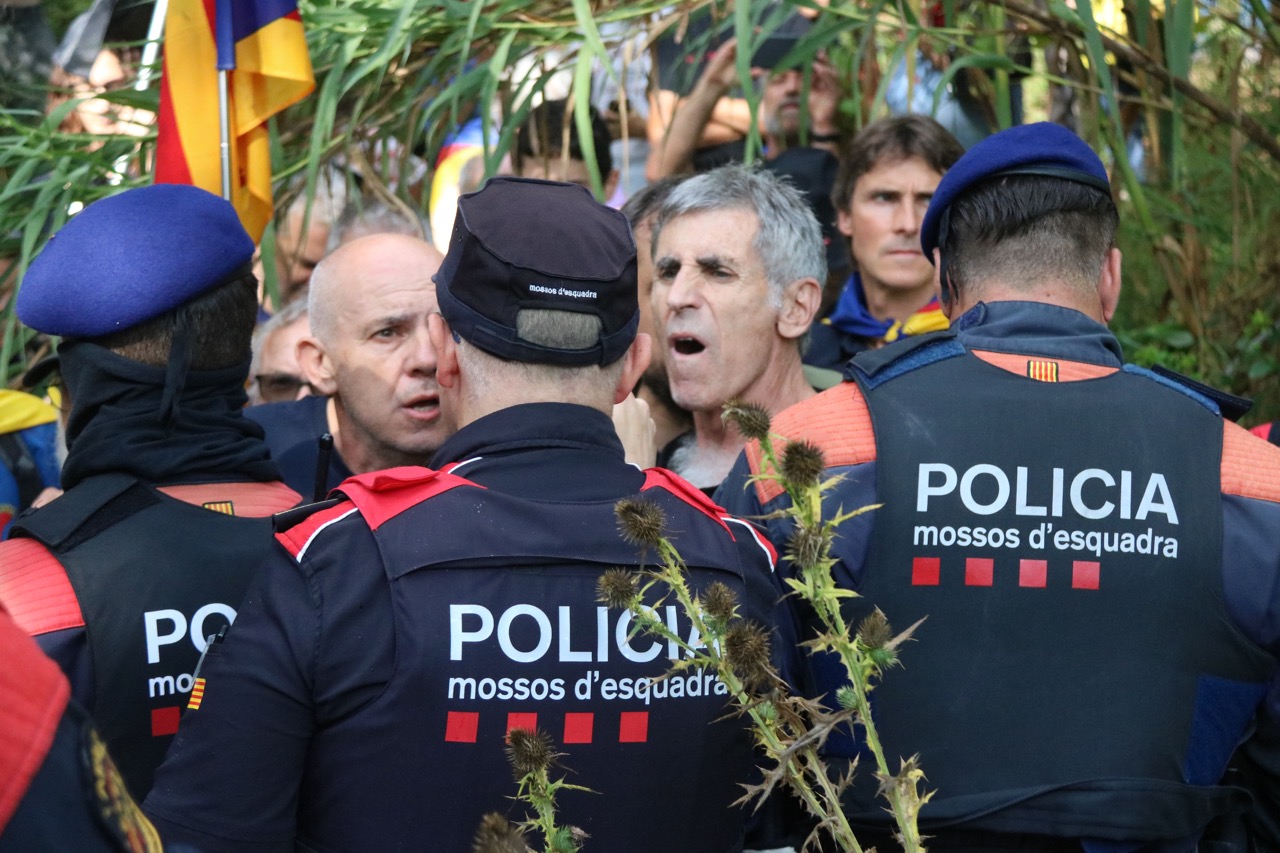 Durant la protesta, es van produir moments de tensió entre els Mossos d’Esquadra i els manifestants, perquè els concentrats es van negar a apartar-se d’un punt de l’entrada del municipi. Els agents de la Brigada Mòbil els van treure un per un entre empentes, i els van encapsular en una zona apartada.