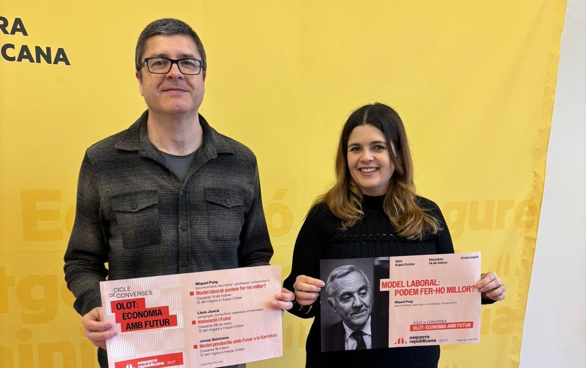 Esquerra d'Olot (Garrotxa) ha organitzat un cicle de converses per situar al centre del debat polític i ciutadà el model econòmic i productiu de la ciutat i la comarca. Sota el títol “Olot: economia amb futur”, la iniciativa planteja tres sessions obertes a tothom per reflexionar sobre quin futur econòmic vol Olot, quines decisions cal prendre per afrontar-lo amb garanties i quines idees poden contribuir a construir una ciutat amb més oportunitats, ocupació de qualitat i un teixit productiu fort i arrelat al territori.