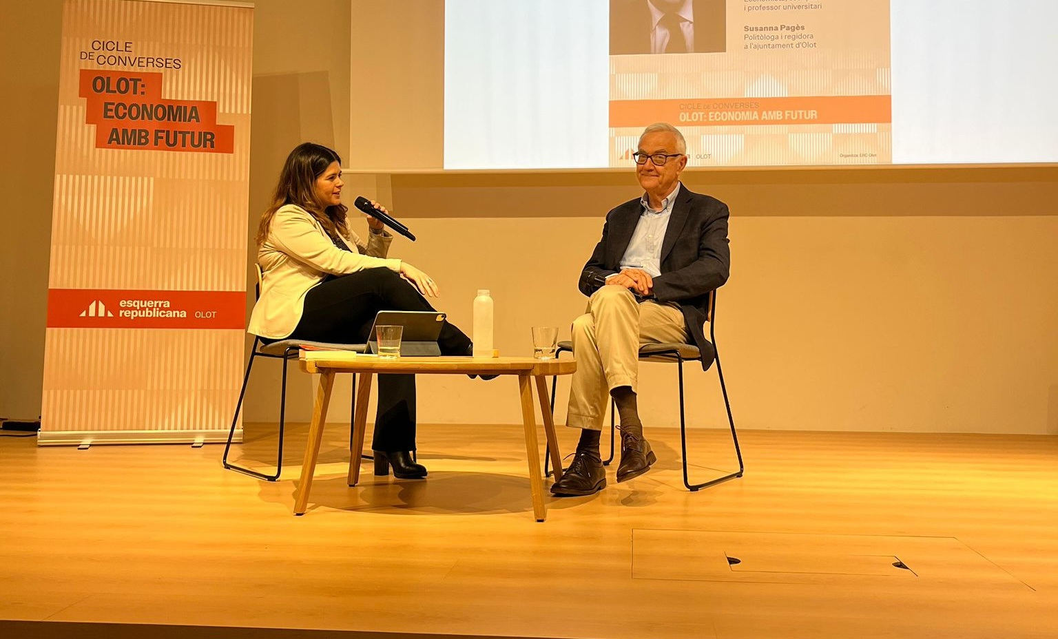 Esquerra d'Olot (Garrotxa) ha iniciat el cicle de converses “Olot: Economia amb futur”, una iniciativa que vol situar el debat econòmic al centre de l’agenda política i ciutadana del municipi. La primera sessió ha anat a càrrec de l’economista, escriptor i professor universitari Miquel Puig, sota el títol “Model laboral: podem fer-ho millor?”.