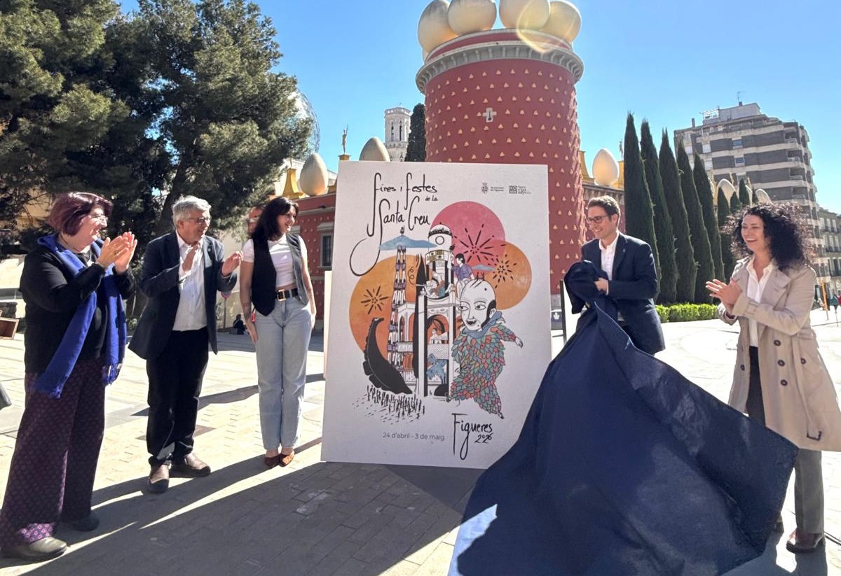 Figueres (Alt Empordà) ha presentat el cartell oficial de les Fires i Festes de la Santa Creu 2026, obra de la dissenyadora gràfica i artista figuerenca Clàudia Cobos Caballero. L’acte s’ha celebrat davant la Torre Galatea del Teatre-Museu Dalí amb la participació de l’alcalde, Jordi Masquef, i del regidor de Cultura Popular, Josep Maria Bernils, entre d’altres representants municipals.