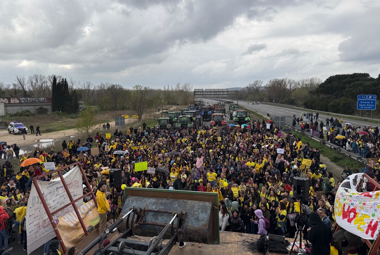 El que sí que van entrar van ser centenars de docents caminant i bloquejant l’autopista entre les sortides Sud i Oest de Girona. Poca estona més tard, però, una quinzena de tractors van acostar-se a un punt a tocar de l’autopista, a prop del club de tir per intentar entrar. Inicialment, els Mossos ho van impedir, però davant de la quantitat de gent i de tractors, van cedir i els pagesos van ocupar la via.