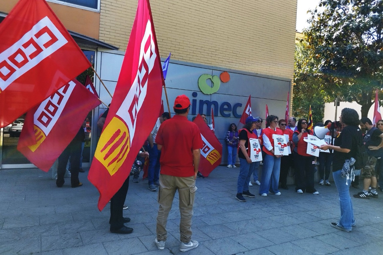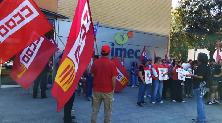 Una cinquantena de delegats de CCOO han protestat aquest dimarts davant de la seu de PIMEC a Girona per criticar les pressions que fan les petites i mitjanes empreses a treballadors perquè aquests no agafin la baixa.