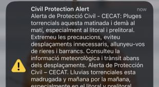 Protecció Civil envia un missatge d'alerta davant la previsió de pluges torrencials