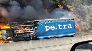 Tallat un carril de l’A-2 a Sils per l’incendi d’un camió
